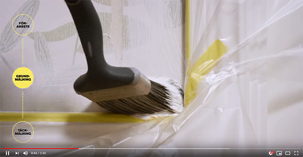 - Måla med pensel intill tak, dörrfoder, golvlister och kontaktuttag.